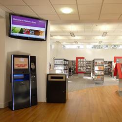 The computer provision expected of a modern library was put in place. This includes public access to the internet, both by the libraries' own PCs and wifi access. Cutting edge RFID provision has also been put in place to allow self checkout and return of books—a more convenient system for custumers which has the added benefit of freeing staff to help with more difficult queries.